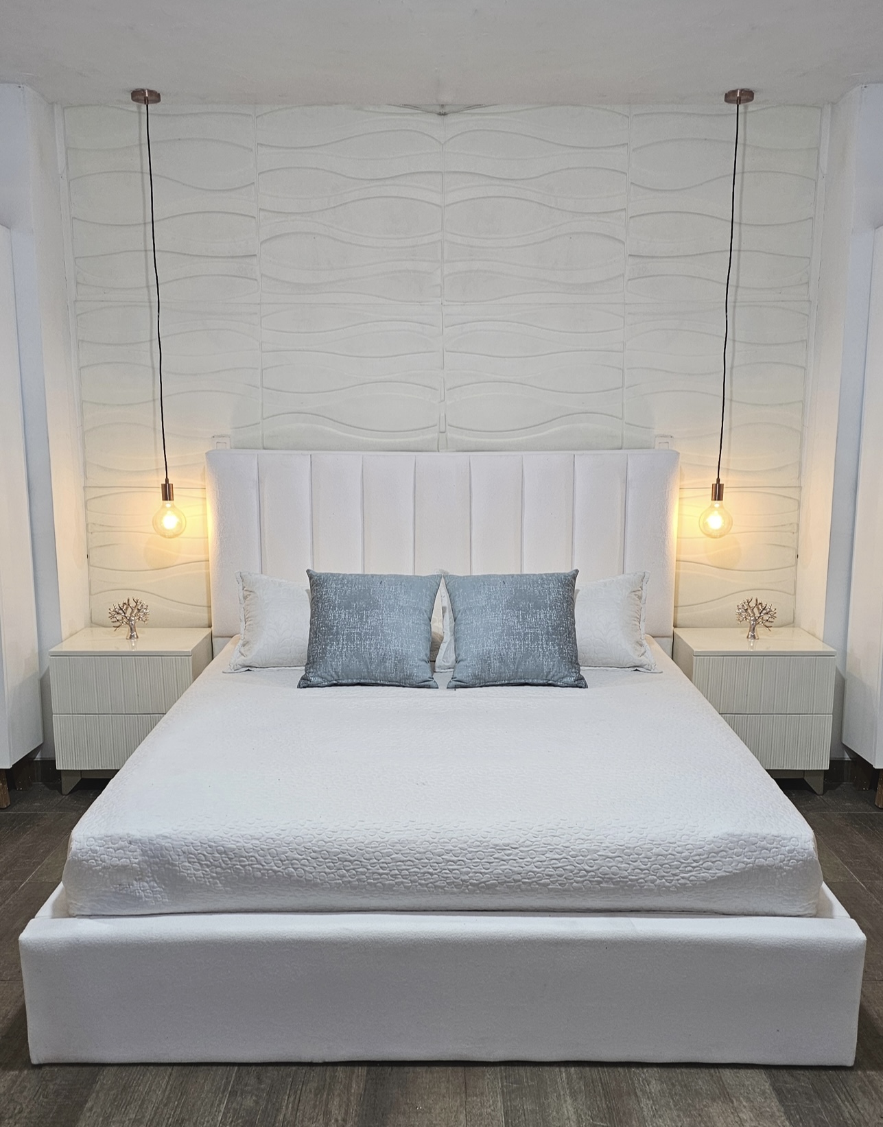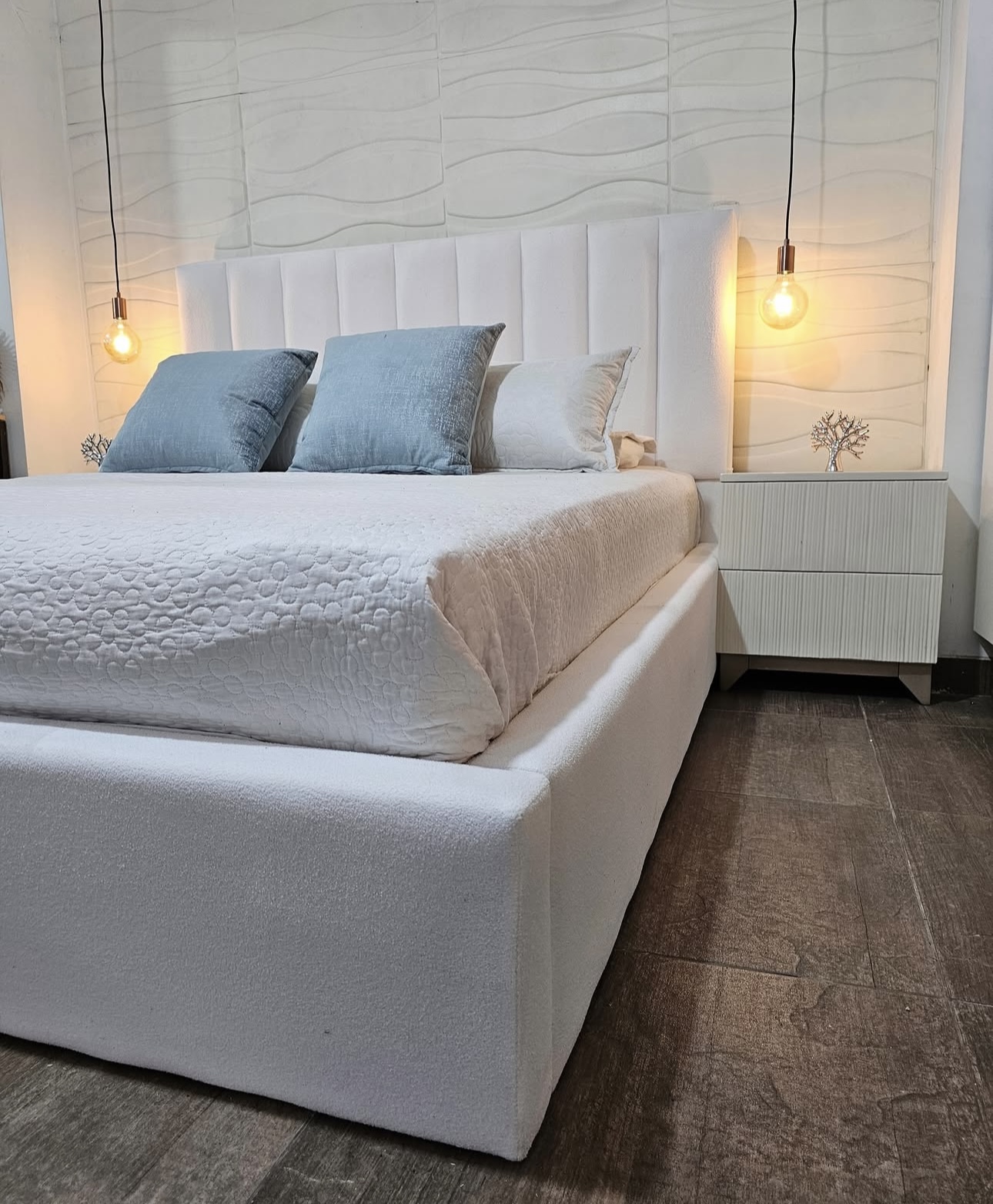 Cama Tapizada + Dos Mesas de Noche