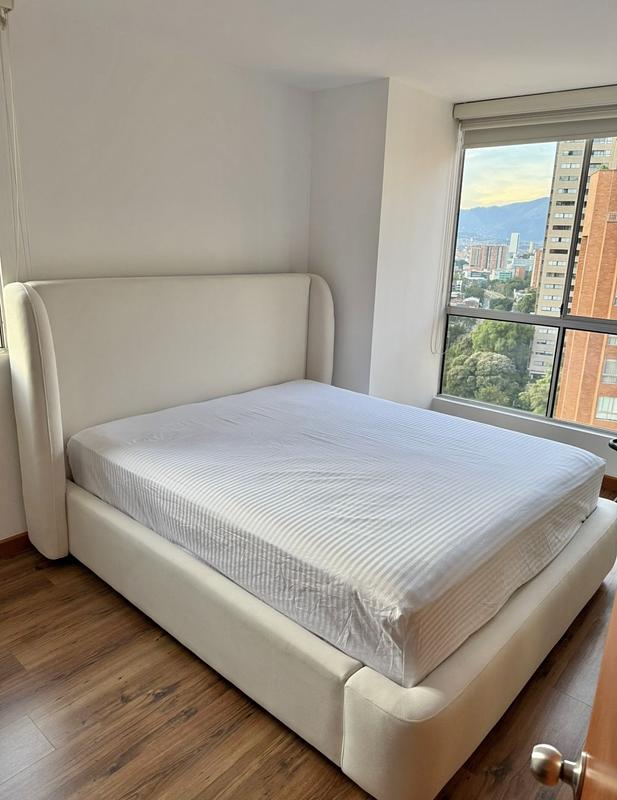 Cama tapizada en un diseño moderno, tapizada en espuma de alta densidad